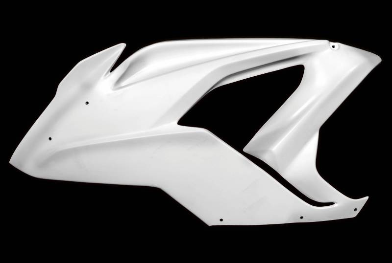 Avio fiber from Carbonin uses aviation grade glass epoxy resin premium fiberglass reinforced with carbon fiber on all edges and mounting points and comes pre-fitted, with pre-installed riveted ¼ turn Allen head Dzus Fasteners. Avio fiber is extremely durable, lightweight, and flexible and is WSBK spec product.