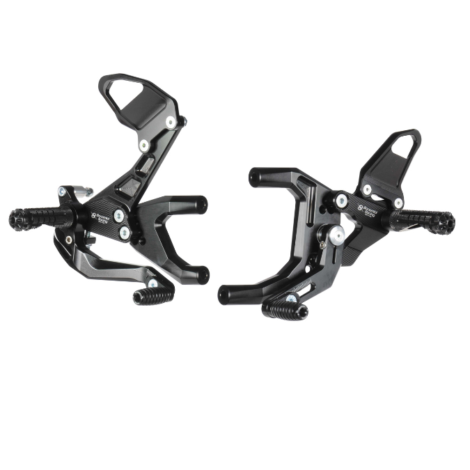 Bonamici Rearsets are made from a single piece of billet aluminium in their factory based in Italy, with a black anodised finish for corrosion resistance and durability. These Rearsets are incredibly high quality. To ensure compatibility, Bonamici laser scan each and every bike they manufacture parts for in order to ensure fitment, after this their parts are fine tuned, tested and validated through various levels of Motorsport meaning you can have complete confidence in these Rearsets to transform your Ducati Panigale!