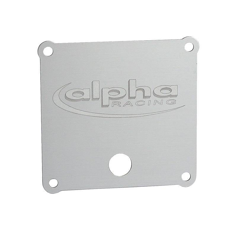 Cover ABS/DTC modulator, for BMW S 1000 RR 2009-2014 and HP4, to be used when removing ABS hydraulic control unit, rubber padded, aluminum anodised, with alpha Racing logo