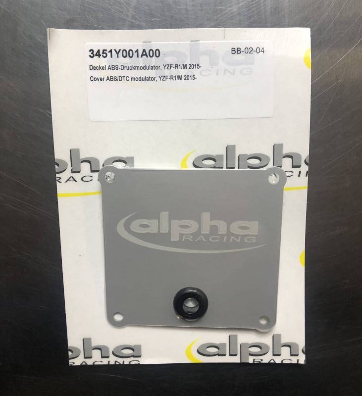 Alpha Racing Cover ABS/DTC modulator, for Yamaha YZF-R1 2015- (RN32/49) 2015-, to be used when removing ABS hydraulic control unit, paper gasket padded, aluminum anodised, with alpha Racing logo