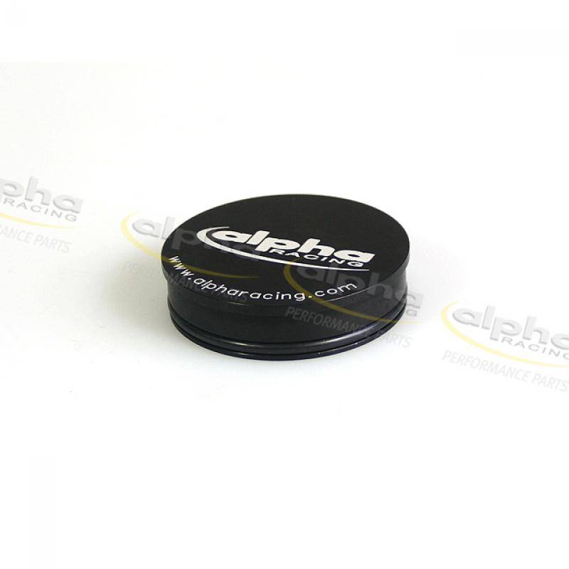 Cover for stock top triple clamp when removing ignition lock, aluminum black anodized, with alpha Racing logo