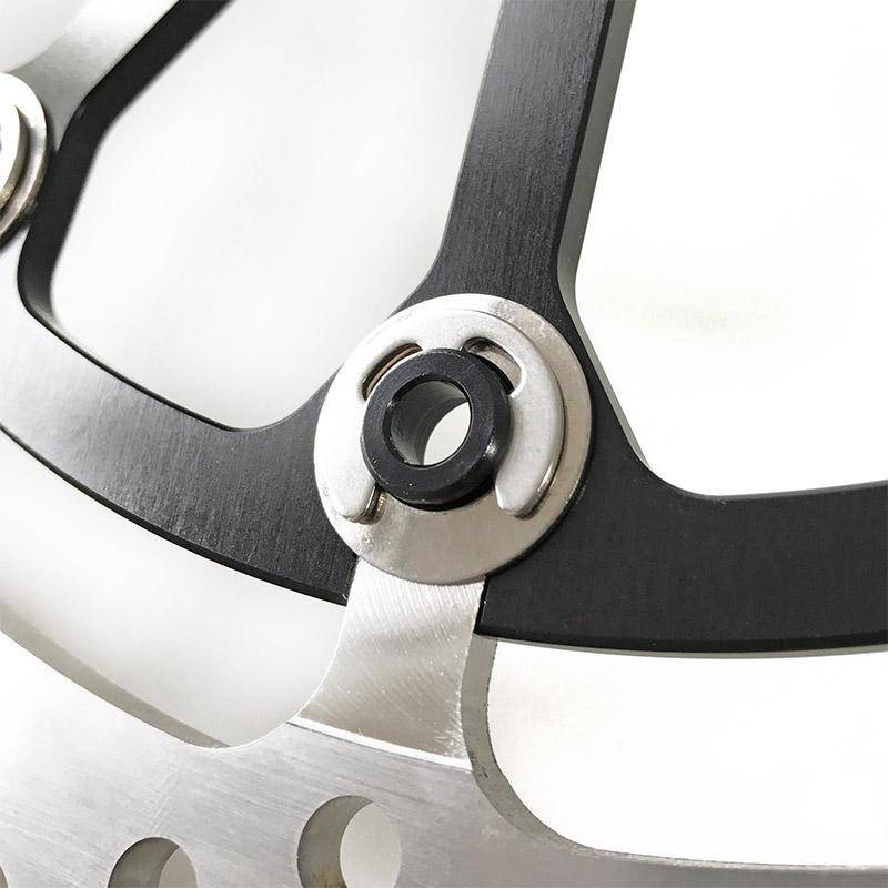 Front brake disc 320x5,5 mm EVO, right, fits racing rim magnesium, aluminium and HP forged rims, carbon steel, T-floated, black anodized aluminium inner ring, modified design for better performance and improved heat dissipation