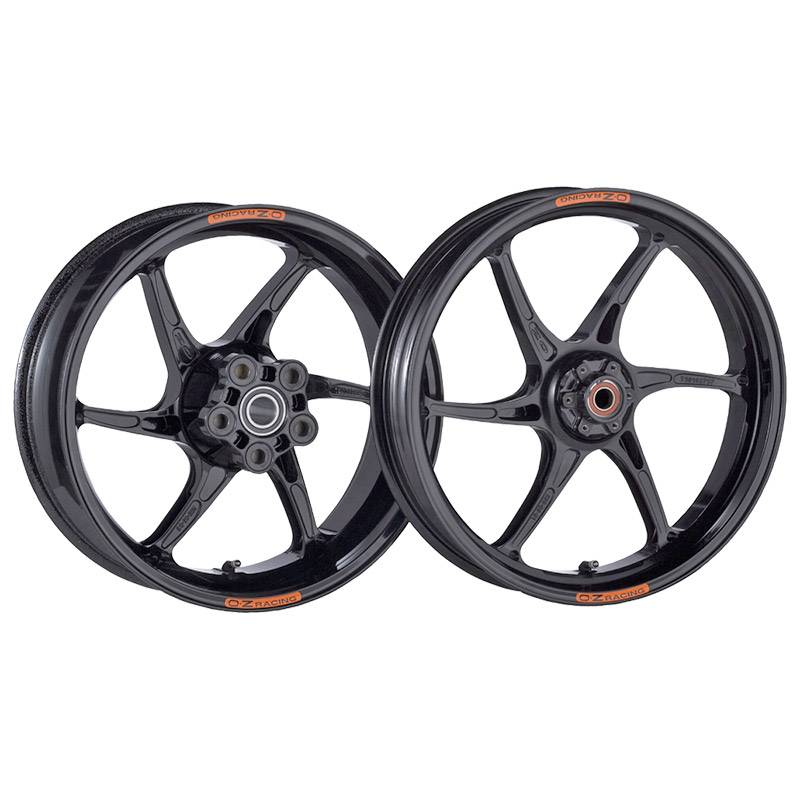 OZ wheel set Cattiva RS-A 3,5"/6,00"x17", forged aluminium wheels for BMW HP4 Race, 6 spokes, black matt anodised, alpha Racing specification, including all bushes required for