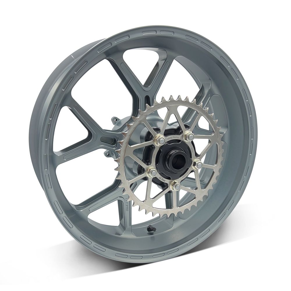 The ultra-light and durable sprockets are successfully used by the official BMW Motorrad factory teams in the WorldSBK. The titanium sprockets have up to three times the mileage in racing compared to aluminum sprockets.
