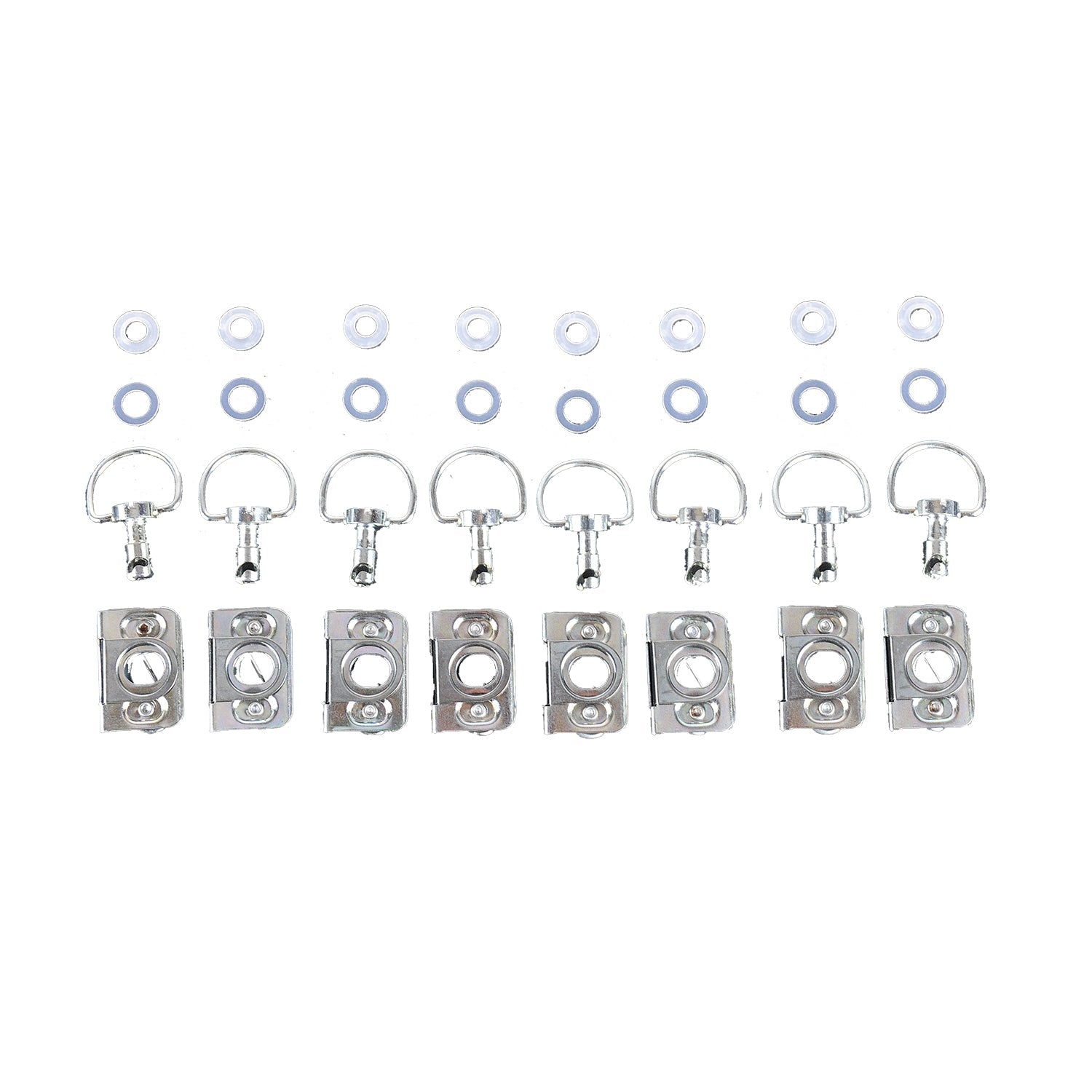 This 8 pack of 1/4 turn Clip-type DZUS fasteners makes installation and disassembly of your race bodywork quick and easy. The D ring heads are easy to use with no tools and make for the fastest assembly/removal possible. These clips will also easily transfer from one set of bodywork to another in the future.