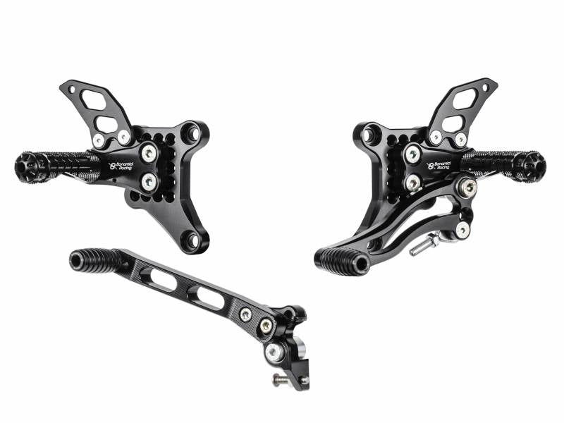 Bonamici Rearsets are made from a single piece of billet aluminium in their factory based in Italy, with a black anodised finish for corrosion resistance and durability. These Rearsets are incredibly high quality. To ensure compatibility, Bonamici laser scan each and every bike they manufacture parts for in order to ensure fitment, after this their parts are fine tuned, tested and validated through various levels of Motorsport meaning you can have complete confidence in these Rearsets to transform your Ducati!