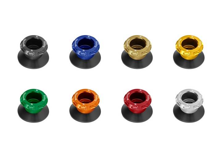 Bonamici Racing, always careful to improve its products, introduces a new system for swingarm spools, with a modern and light design which, thanks to the combination of colored and black elements, results in a product with elegant, original, functional and strong aesthetic impacts. This system is designed with modularity such as to cover all types of connections with M6, M8, M10x1.25 and M10x1.5 threads.Completely machined from solid aluminum using the latest generation CNC machinery, the swingarm spools are available with anodization in various colors in both the standard version and the racing version.