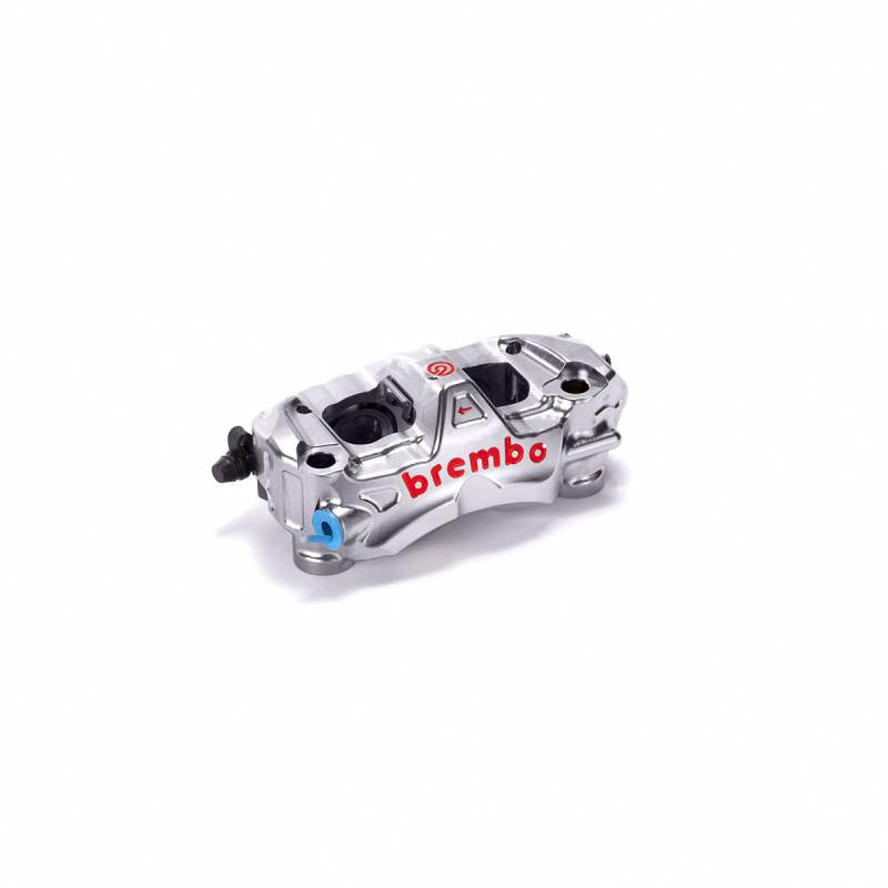 Brembo Caliper, Right, P4 30/34mm, EVO Low Drag, without Pads 07B366E3/E4, Billet Monobloc, 108mm Radial Mount, for use w/ Narrow Band Disc, Front, Nickel XB0B1P1
