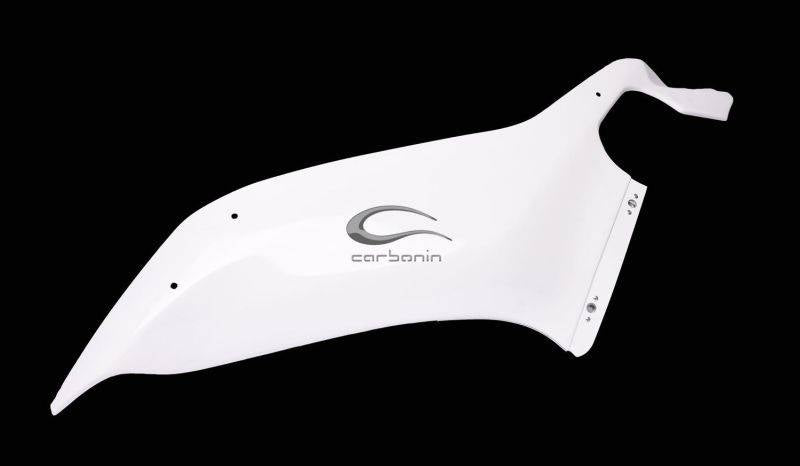 Avio fiber from Carbonin uses aviation grade glass epoxy resin premium fiberglass reinforced with carbon fiber on all edges and mounting points and comes pre-fitted, with pre-installed riveted ¼ turn Allen head Dzus Fasteners. Avio fiber is extremely durable, lightweight, and flexible and is WSBK spec product.