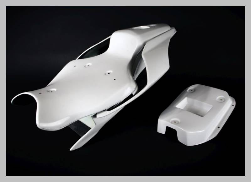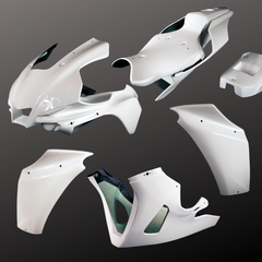 Avio Fiber fairings (epoxy resin) is an alternative to standard fiber glass fairings (gfk) because it is lighter, flexible and stronger. Reinforced with Carbon Fiber, these fairings are of the highest standards required by professional race teams for perfect fitment and ease of removal and installation.