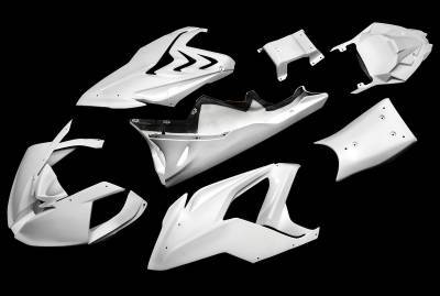 Avio Fiber fairings (epoxy resin) is an alternative to standard fiber glass fairings (gfk) because it is lighter, flexible and stronger. Reinforced with Carbon Fiber, these fairings are of the highest standards required by professional race teams for perfect fitment and ease of removal and installation.