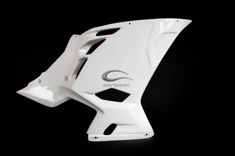 Avio Fiber fairings (epoxy resin) is an alternative to standard fiber glass fairings (gfk) because it is lighter, flexible and stronger. Reinforced with Carbon Fiber, these fairings are of the highest standards required by professional race teams for perfect fitment and ease of removal and installation.