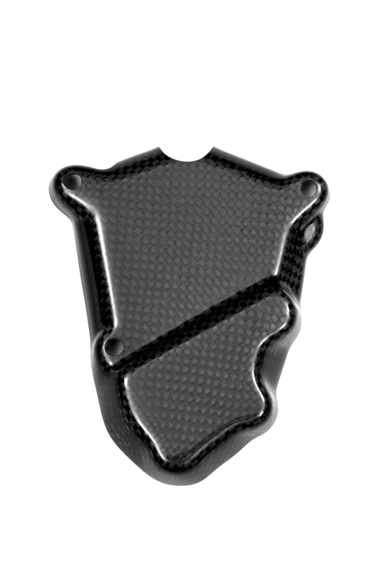 Carbon fiber timing cover installed with Bolts (not supplied)