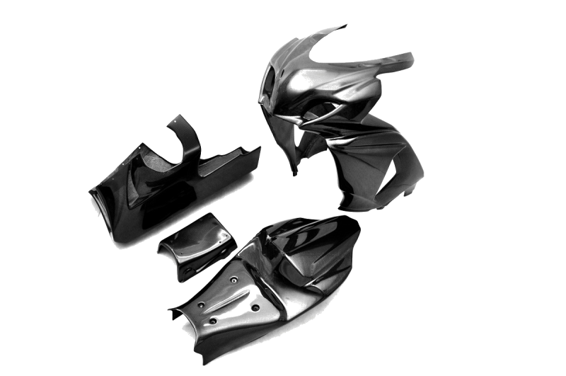 Carbon Fiber Fairings made with Plane weave carbon and in some case pre-pregnated carbon fiber on the inside.