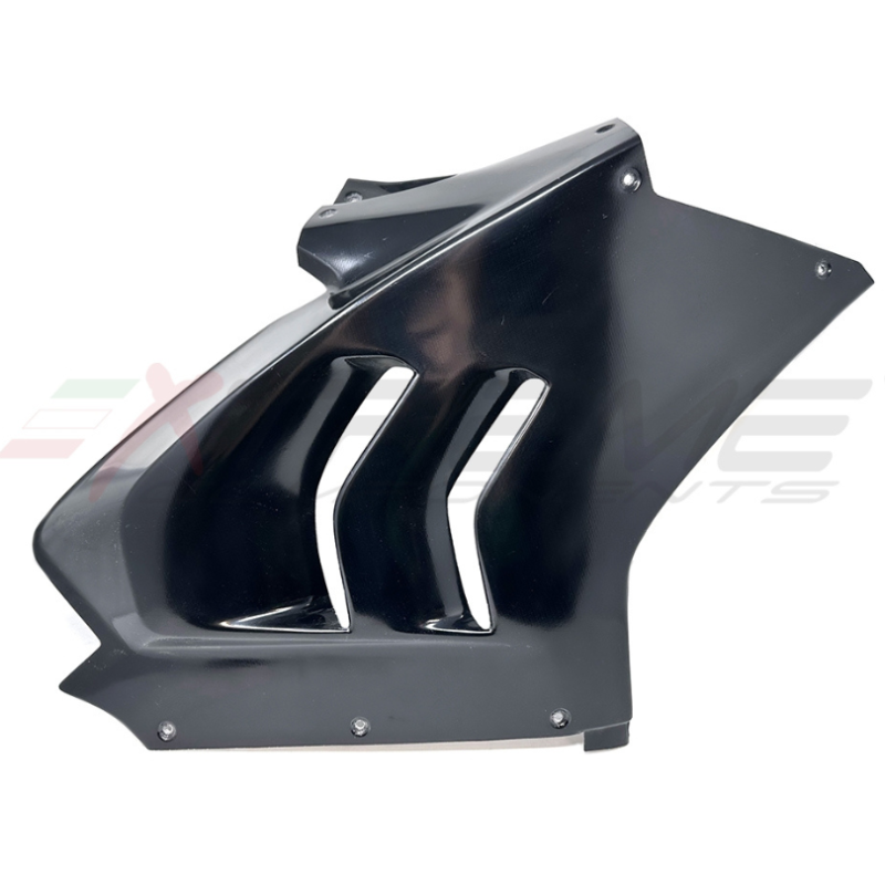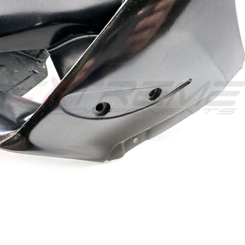 Our Carbon Fiber and Black Fiber fairings are sold pre-drilled thanks to the presence specific bushes on the molds; These avoid any type of mistake on the installation process and guarantee a perfect alignment between all the parts.