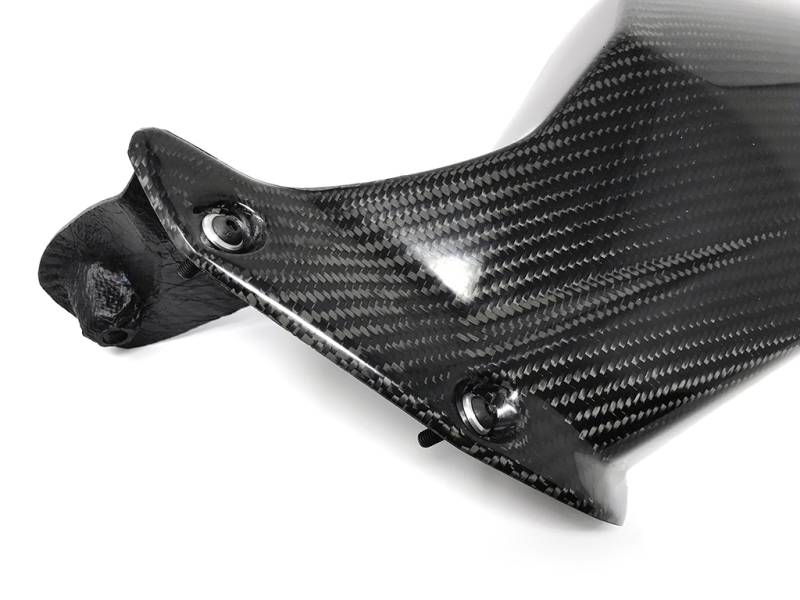 Our carbon fiber is of very high quality, with a flawless gloss finish, the perfect matching of the parts, with the peculiarity that the engine covers have multilayer Kevlar to make the engine protection real in case of a fall and the same (where possible) can be attached directly to the screws of the cover without having to resort to the usual silicone used by most of our competitors.