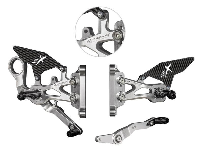 Extreme Components GP EVO rear sets kit for BMW S1000RR (2019/2020) (standard and reverse shifting) with carbon fiber heel guard (silver) - PED-GP EVO S1000RR 19B