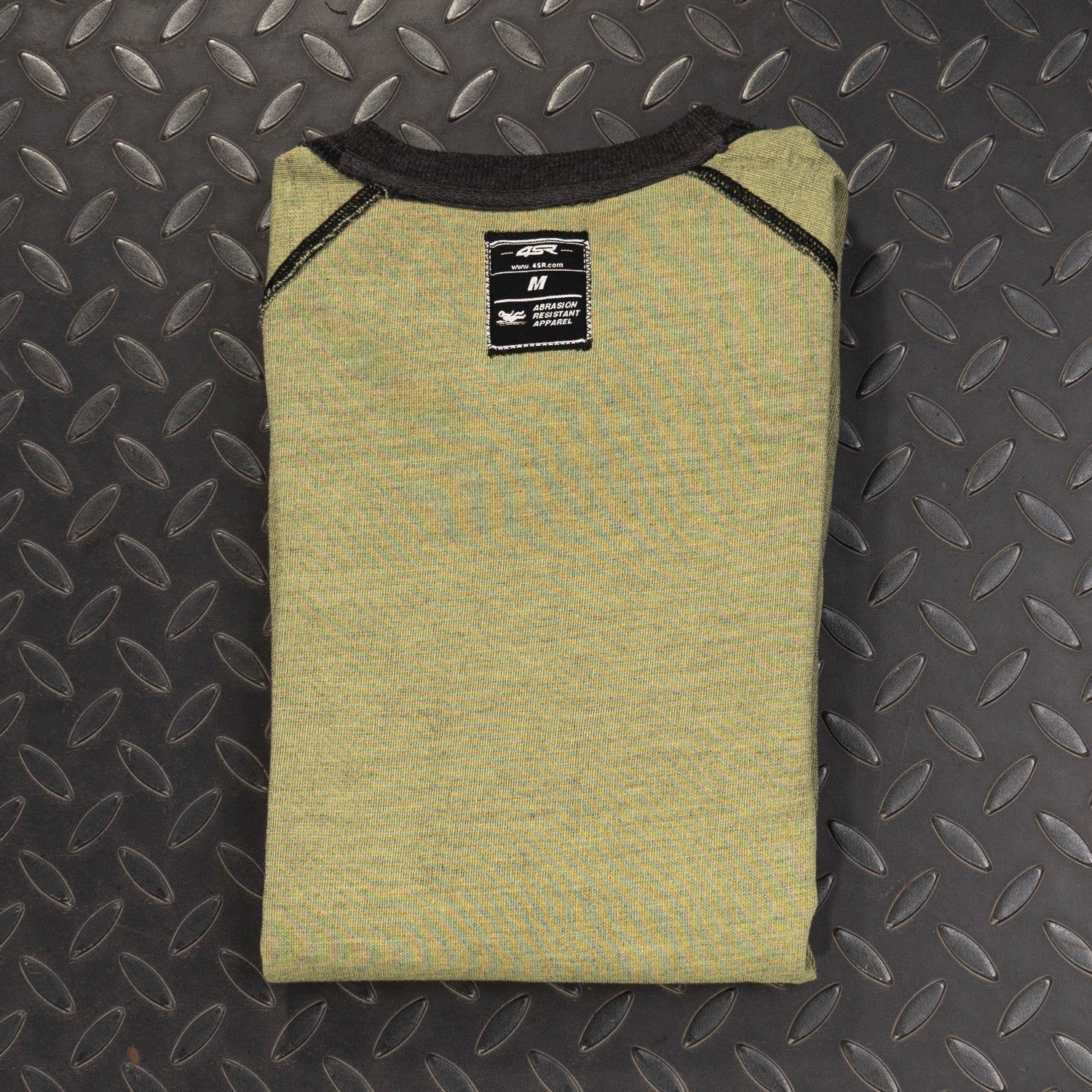 The grey Kevlar motorcycle sweatshirt with a fluorescent yellow camo print on the chest is sewn from a unique single-layer Kevlar fabric. This makes it very lightweight and incredibly breathable. In addition, it protects the rider's torso and arms from abrasions and cuts during a fall over its entire surface. Therefore, it does not need to be lined with additional protective layers of Kevlar in selected areas, as is common with motorcycle sweatshirts. The 4SR Kevlar sweatshirt is thin, lightweight, breathable, and durable - simply functional.