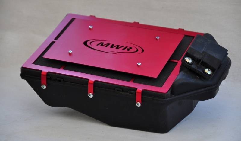 This MWR High Efficiency open airbox airfilter will give the ultimate in performance. The holding frame will be screwed into the sides of the airbox. The airfilter includes screws & spacers. No modifications to the airbox are needed, just remove the lid of the airbox to install. It should also be known that intake noise will obviously increase with the HE Air Filter, as the top of the airbox is removed. On the bright side, it sounds GREAT!