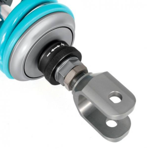 This shock features spring preload adjustment. It comes preset for damping and preload and includes the bearing end spacers and preload adjuster tool.