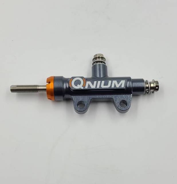 This high quality rear brake master cylinder has been specially developed for people who want to keep the rear foot brake in addition to the Qnium thumb Brake or Left Hand brake. These rear brake master cylinder comes with an extra banjo connection for the Qnium thumb brake or Left Hand brake. Of course the Qnium Rear thumb brake or Left Hand brake can also be mounted directly on the rear brake caliper without a rear brake master cylinder.
