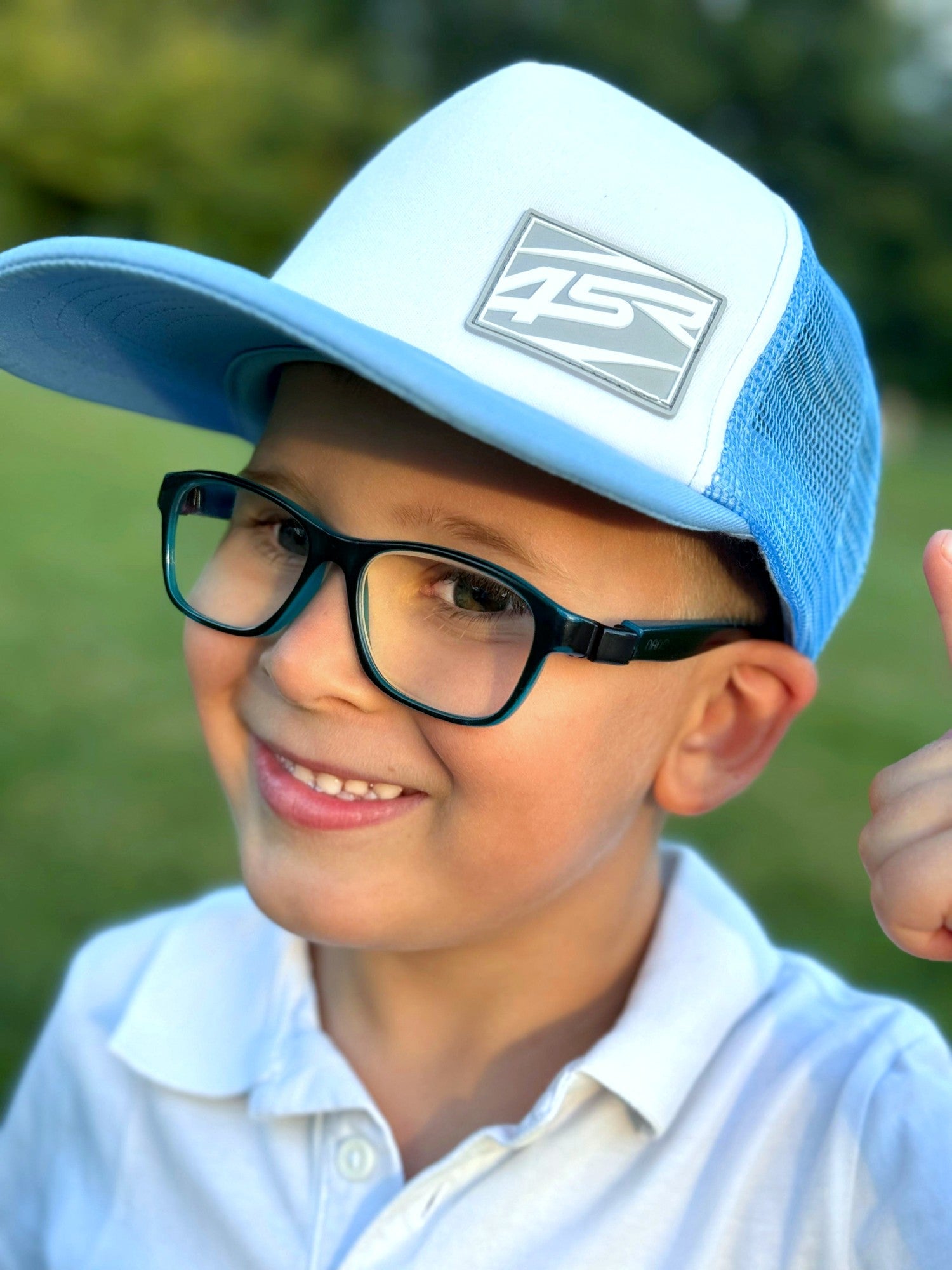 Children's cap with a 3D rubber patch with the 4SR logo.