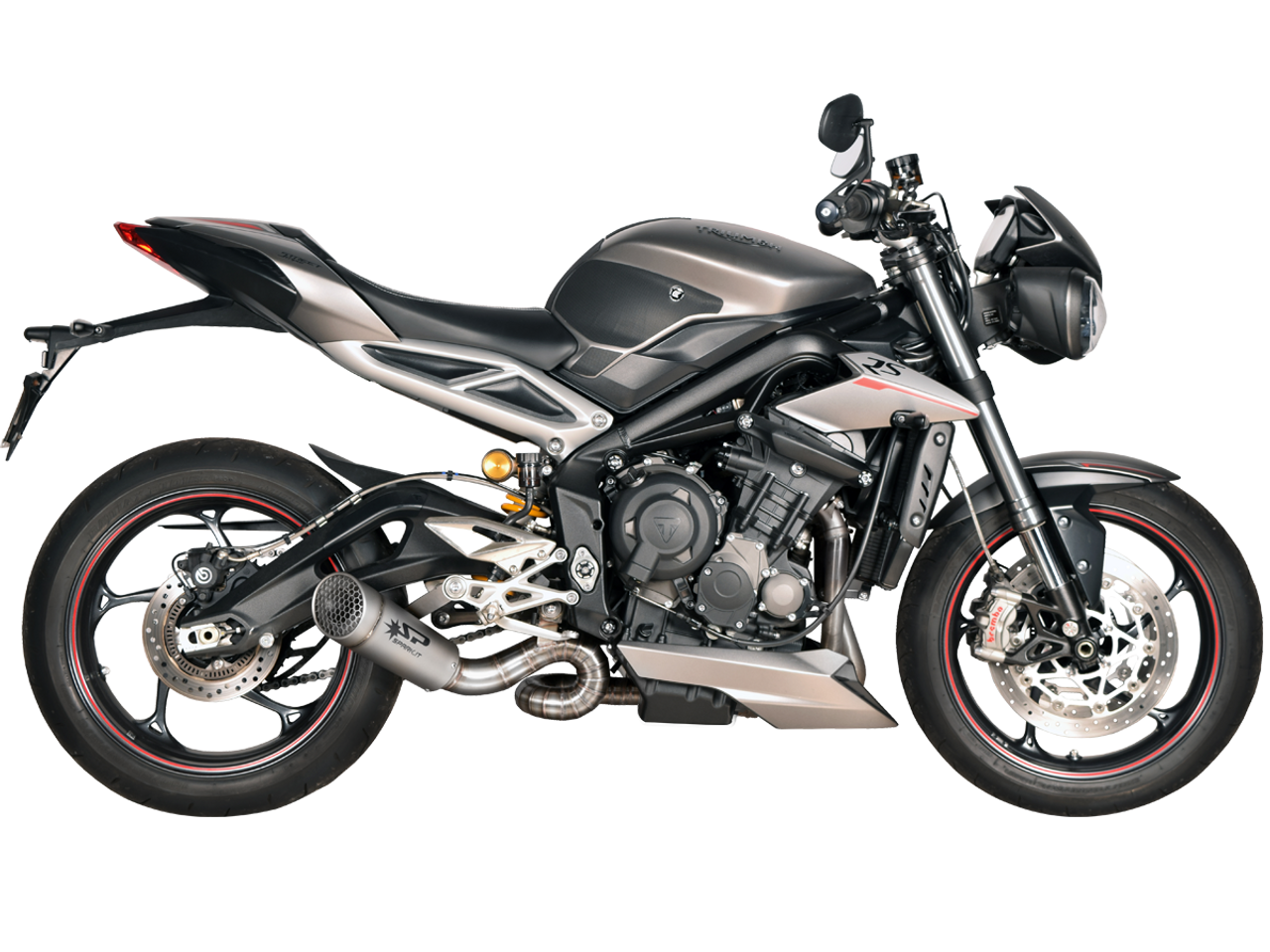 Spark Exhaust Technology Triumph Street Triple 765 R/RS (2018-2022) Stainless Racing Header. Spark R&D has worked intensively on the new 3-cylinder engine by Triumph so as to get the top performance. Both homologated and racing half systems can be mounted on the original collector (with original catalyst) or together with Spark racing collector SP-GTR8502. Handcrafted in Italy. Ultra lightweight approximately 2.2kg. Dyno Tested for maximum horsepower increase over stock. Non-Homologated Racing Version for Maximum Performance.