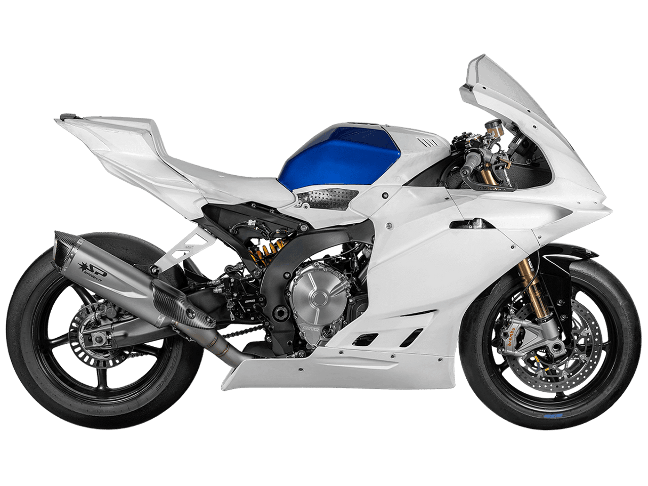 Spark Exhaust Yamaha R9 "Force Evo" Titanium Full Exhaust System. Constructed in 70mm with a titanium silencer fitted with carbon ending, titanium mid-pipe and titanium racing header. Spark R&D has been working extensively on the Japanese motorcycle from Yamaha offering the same technology used by FIM Approved WSSP600 version. The result is an engineering masterpiece that combines lightness and power with a weight reduction of 49% compared to the original. This system guarantees a significant increase in torque across the entire power delivery range, transforming every curve into pure adrenaline. Includes carbon fiber heel guard. Ultra lightweight approximately 3.6kg (49% lighter than stock). Dyno Tested for maximum horsepower increase over stock. Racing Version for Maximum Performance (70mm). For perfect performance, throttle response and durability, ECU remapping is recommended. Handcrafted in Italy. *This kit has been specifically developed for Supersport configured racebikes (with supersport radiator and swingarm, not with passenger footpegs and with an O2 bung hole on each cylinder connection and one after the 3>1).