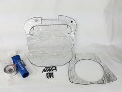 These kits come pre cut to fit your model motorcycle , all you need to do is remove any factory heat sheild material clean with a degreaser and install your Teknofibra material , It really is simple.